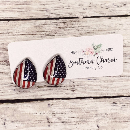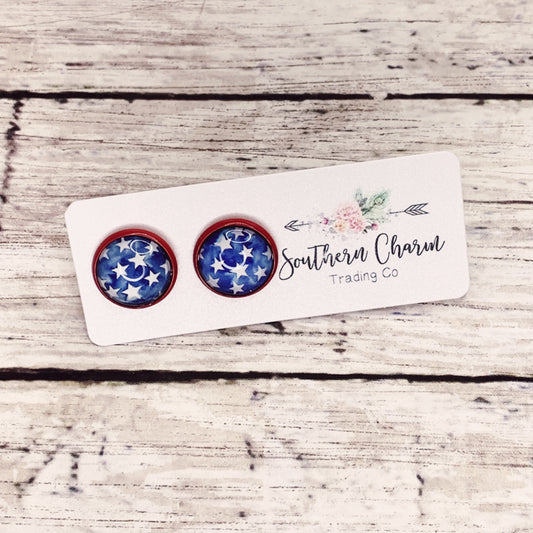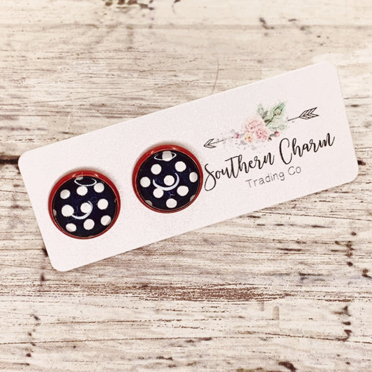 Patriotic Rockabilly White Polka Dot Button Earrings (1 pair)