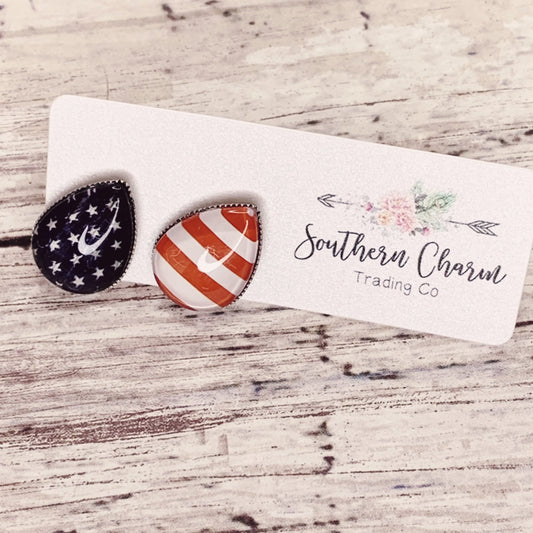 Blue Line Flag or Red Line Flag Button Stud Earrings (1 pair)