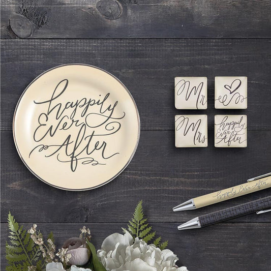 Happily Ever After Ceramic Trinket Tray - Wedding Gift - Anniversary Gift - Jewelry Dish - Ring Holder