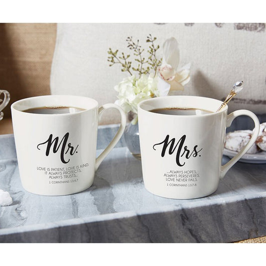 Mr & Mrs Cafe Coffee Mug Set - Love is Patient... Love Never Fails - 1 Corinthians - Inspirational Mugs
