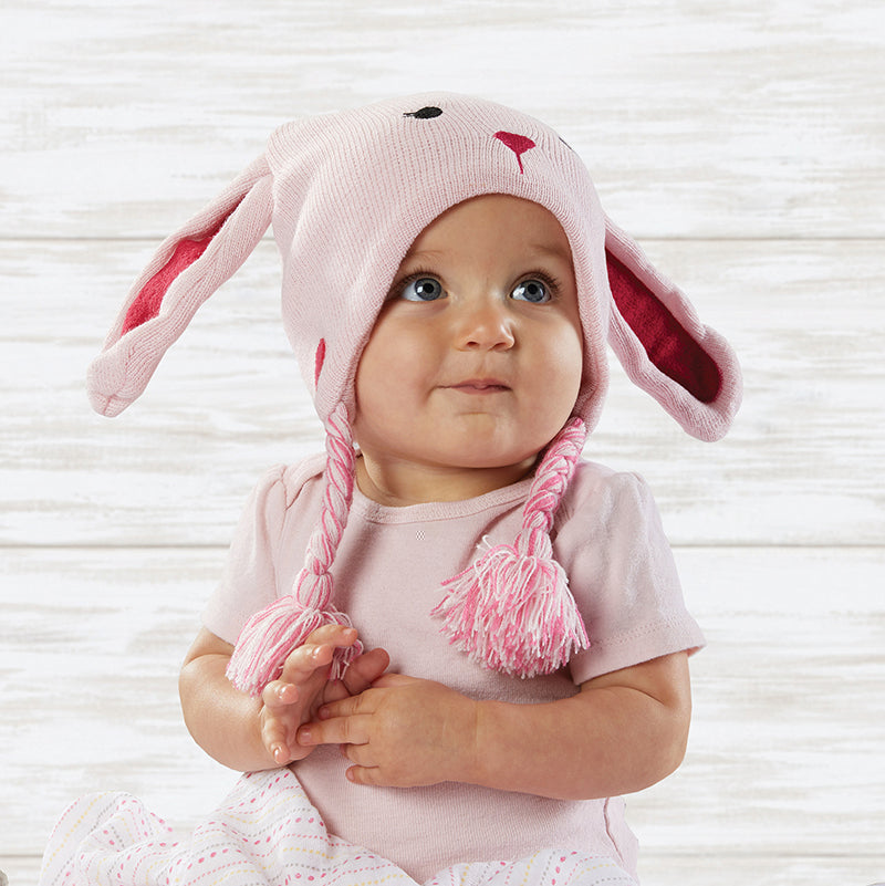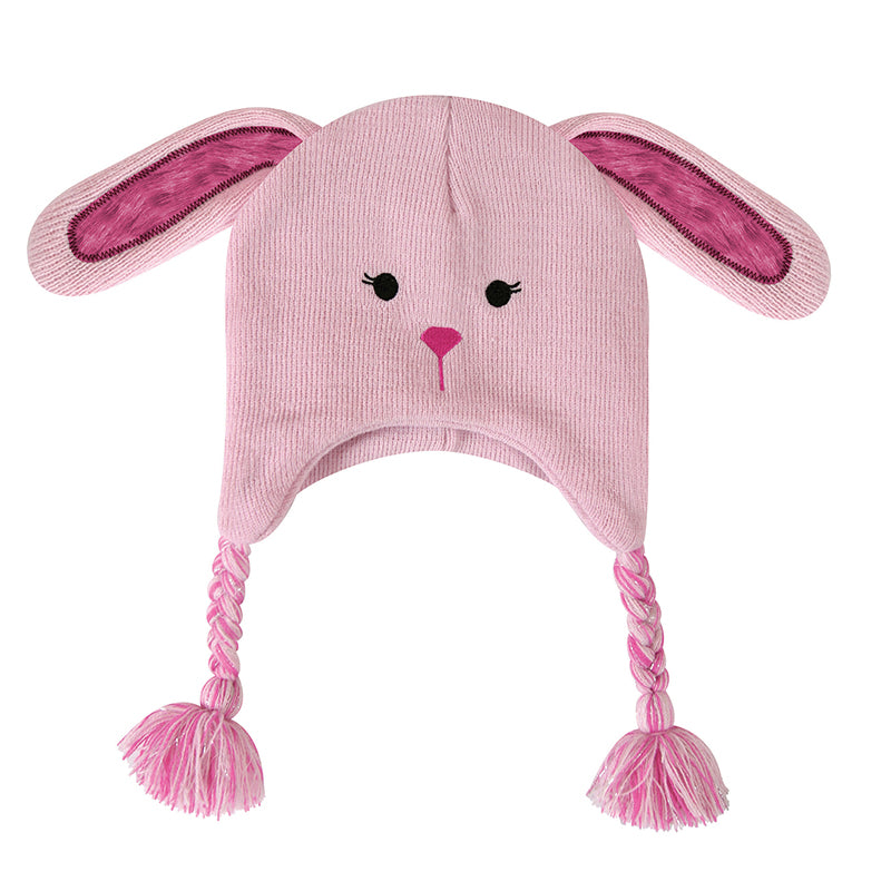 This is just too cute! Keep your little one warm and adorable in what will become their favorite animal knit hat. Pink bunny with floppy ears features an embroidered bunny design and pink braids to add to the cuteness of this child's beanie. Great year round for those cold nights or whenever a chill hits. Keep it in your diaper bag to always have on hand just in case.